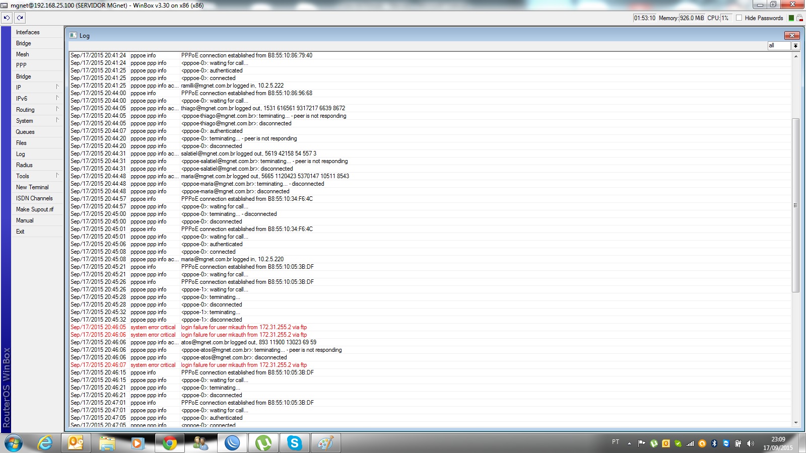 Pessoal boa noite, a dias alguns usuários caem a conexão do nada e depois reconecta ficam uns 20 a 50 minutos e caem novamente, utilizo mikrotik com mk-auth com autenticação pppoe. O que pode ser? Segue o LOG...