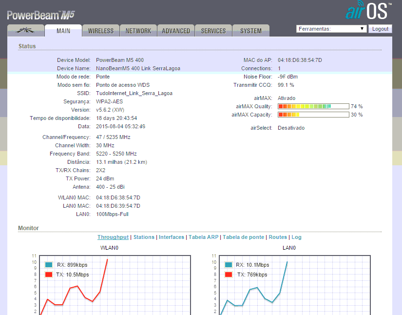 E Airgrid com sua ridícula polarização única só passaria algo perto disso usando a porcaria do canal de 40MHz.