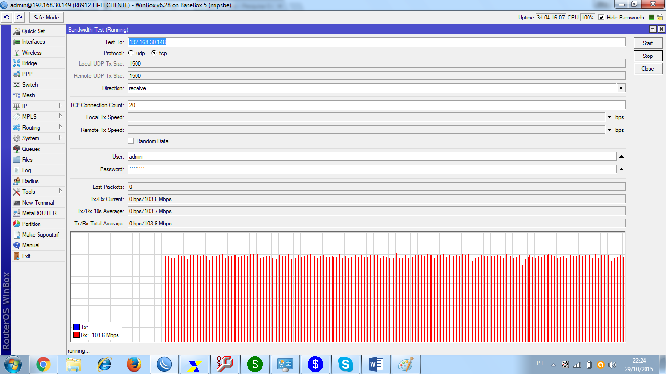 Amigo vc tem que testar em udp, em tcp estoura o limite de processamento da rb.