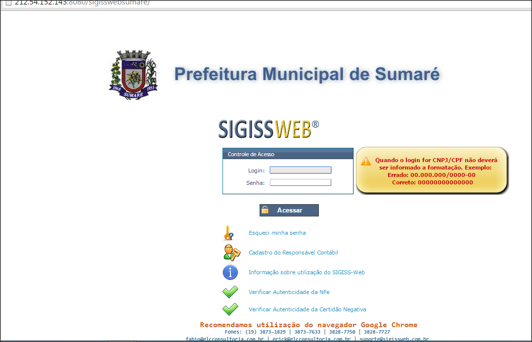 Conforme já informado consigo acessar o site http://www.sumare.sp.gov.br/2011/index.html porém na quando clico no link que preciso abrir é direcionado para o IP 212.54.152.143:8080 até consigo pingar o IP conforme imagem abaixo.