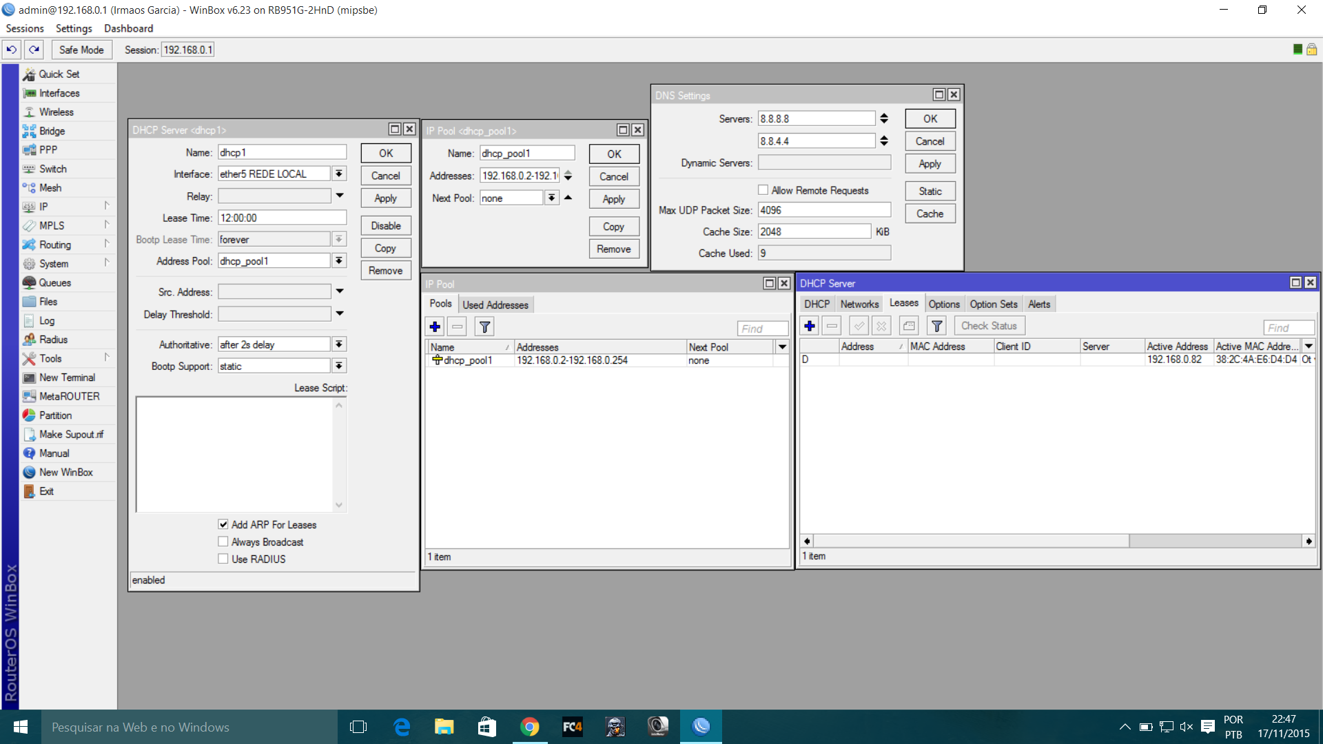 Até ai blz ate que esta funcionando, configurei tambem o dhcp na rb, só que quando eu coloco ela no switch para distribuir, alguns computadores na rede recebe o ip mas nao navega, e la na RB nao recebe o MAC do pc e aparece na frente busy.