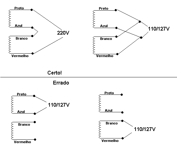 Se o modo de ligar parecer estranho, é só visualizar o enrolamento interno: