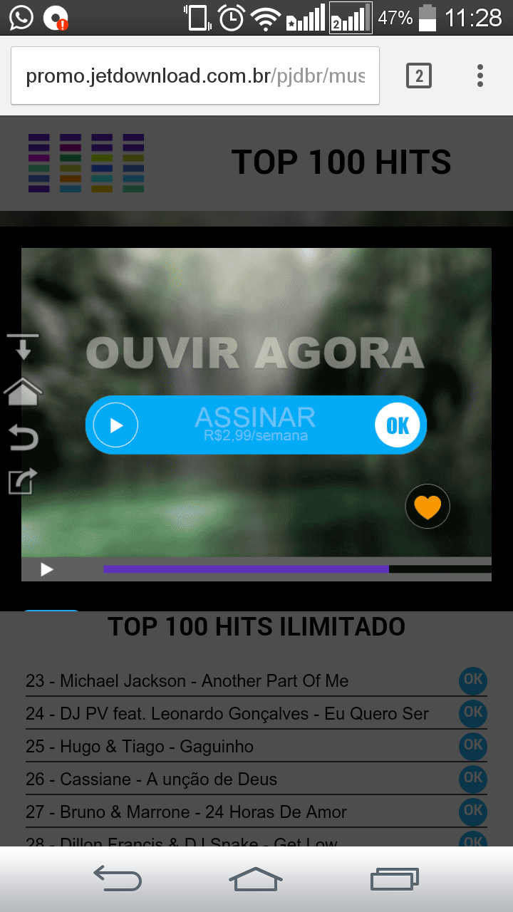 E se clicar em ouvir agora ativa um serviço na linha que vai debitar seus créditos ou na fatura pós paga e na sequencia vem um sms como esse