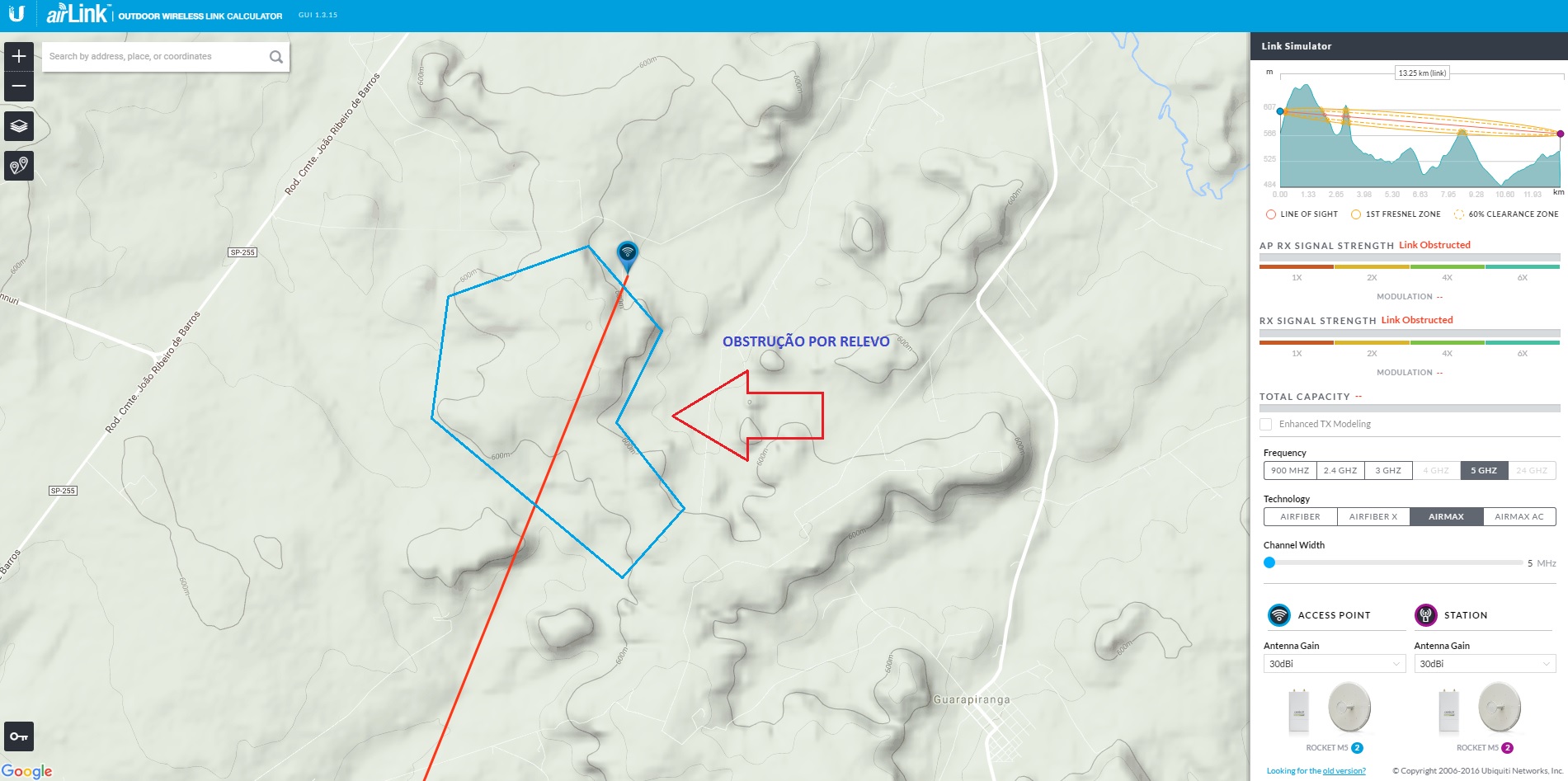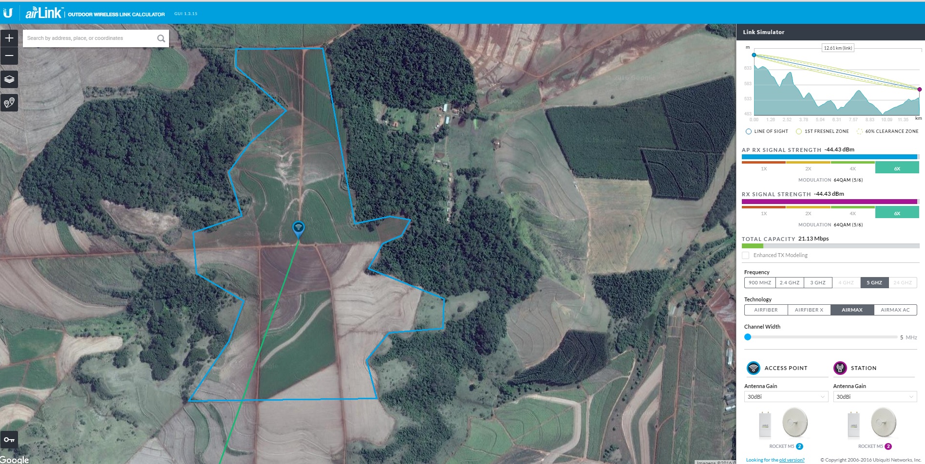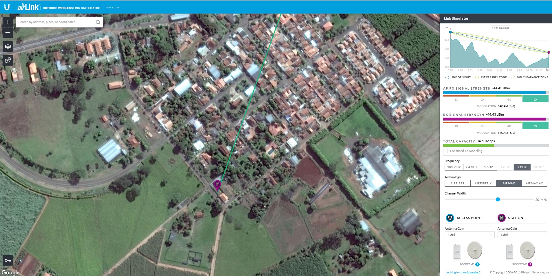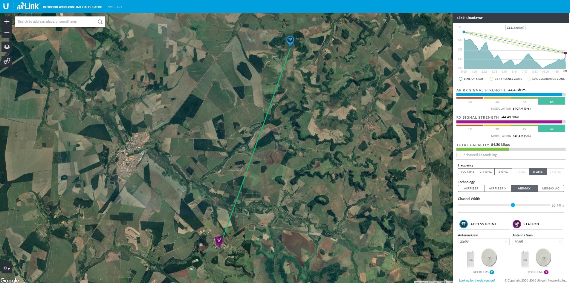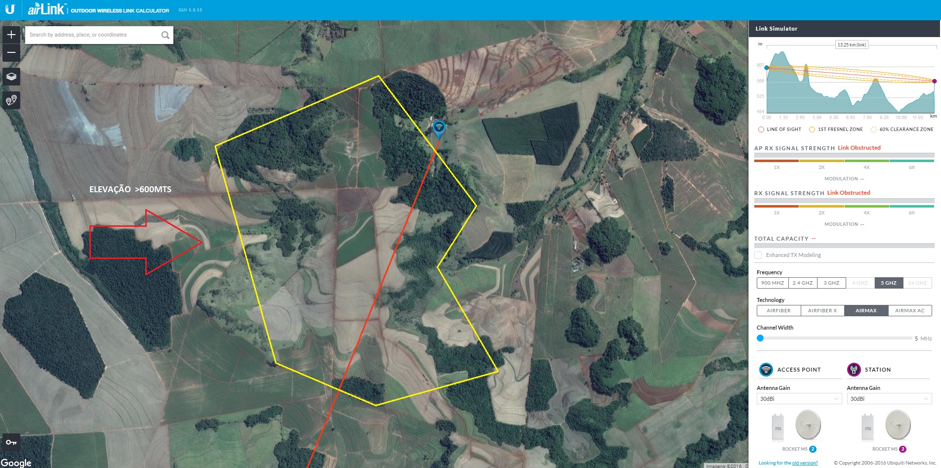 O enlace vai sair de uma torre de 35 metros, com as coordenadas: