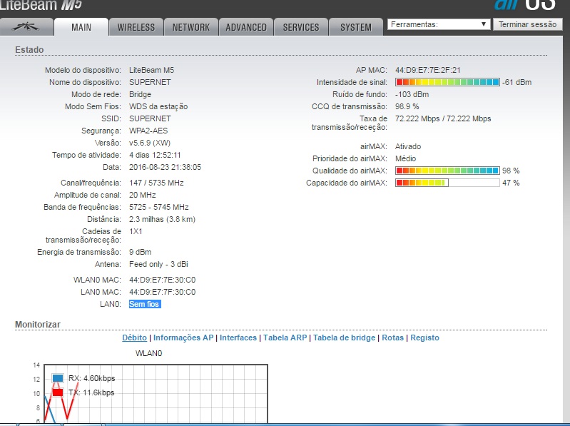 Olá a todos do forum, sou novo por aqui. tenho uma GVT de 50MB fiz um Ponto a Ponto da empresa até a minha casa que tem uma visada perfeita.