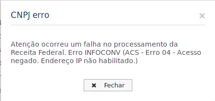 Estou tentando solicitar nova outorga no Mosaico e ao preencher o CNPJ e clicar em Buscar, está ocorrendo um erro falando que o IP não está habilitado para consultar a base da Receita Federal. Claro que se refere ao IP do servidor da Anatel. Mandei e-mail para eles sobre isso, mas já faz quase 1 semana e os incompetentes não responderam ainda, só para atrasar ainda mais um processo burocrático que já é lento e obstrusivo.
