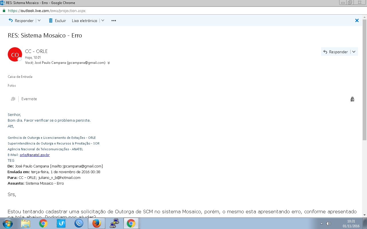 Enviei outro e-mail cobrando. Esse pessoal da Anatel está folgado de mais, estão achando que estão fazendo favor em verificar e corrigir isso.