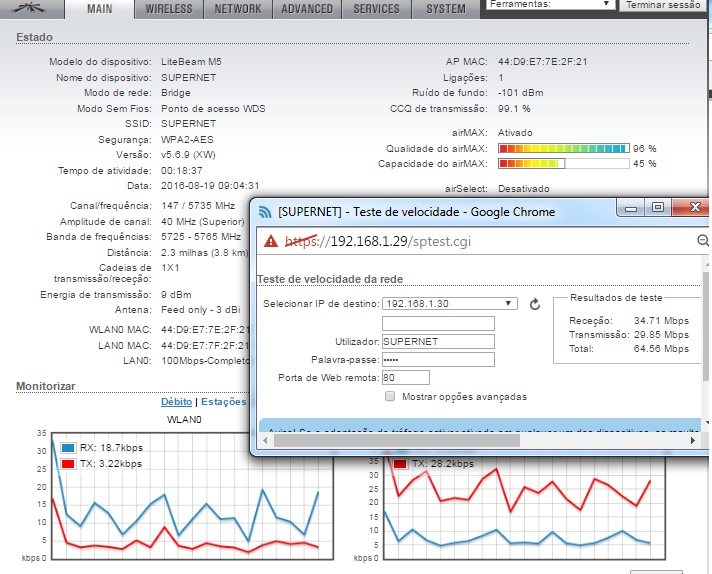 Fiz um ponto a ponto de 4 km com 2 antenas Litebeam, esta funcionando, mas a velocidade fica variando. acho que inverti as antenas pois coloquei a (estacão para enviar a internet e o ponto de acesso para receber ).