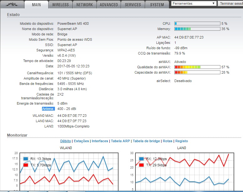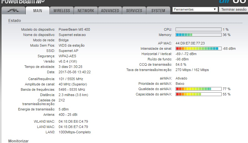 ptp Power Beam m5 400 25 dbi enlace 13 km zona ( Rural sem poluição ), por mais que eu calibrei o enlace de varias formar , nao passa mais que 10 mbs .