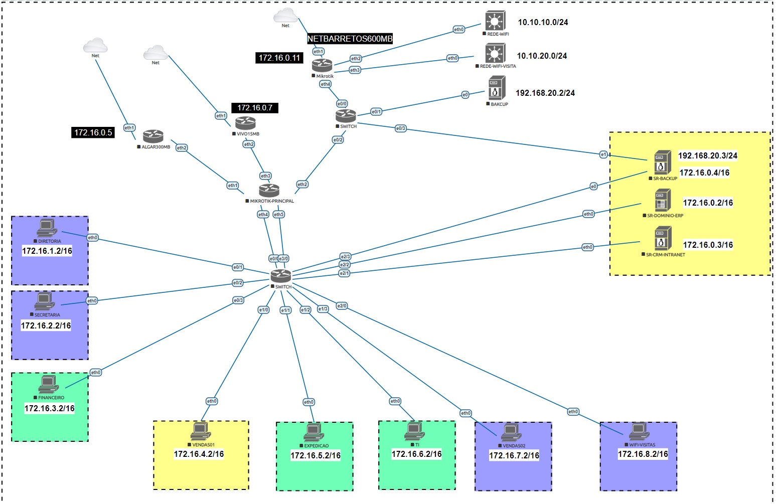 Tenho rede de setores da empresa e os servidores.