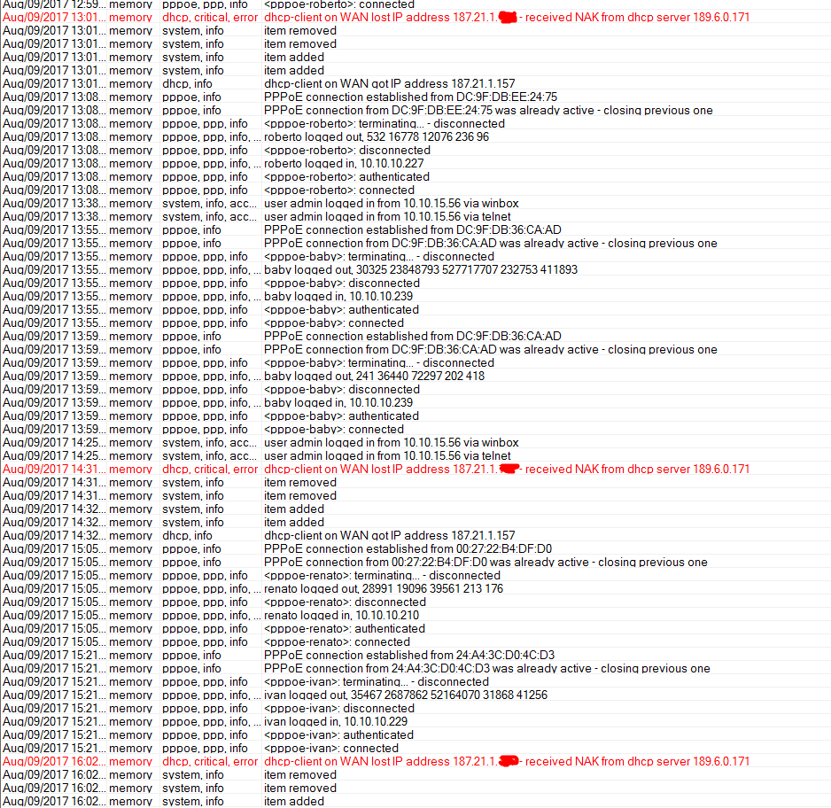 dhcp-cliente on ether1_LINK lost IP address xxx.xx.xx.xxx - received NAK from dhcp server xxx.xxx.xxx.x