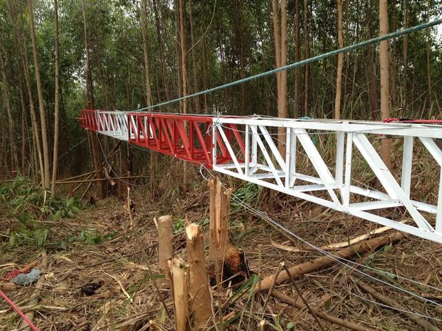 Deixei pronta mais uma torre para meus enlaces aqui... e ao contrario do que todos fazem, eu levantei uma torre de 20 metros inteira, de uma vez só... sem base de concreto, com apenas os fixadores de cabo ja chumbados!