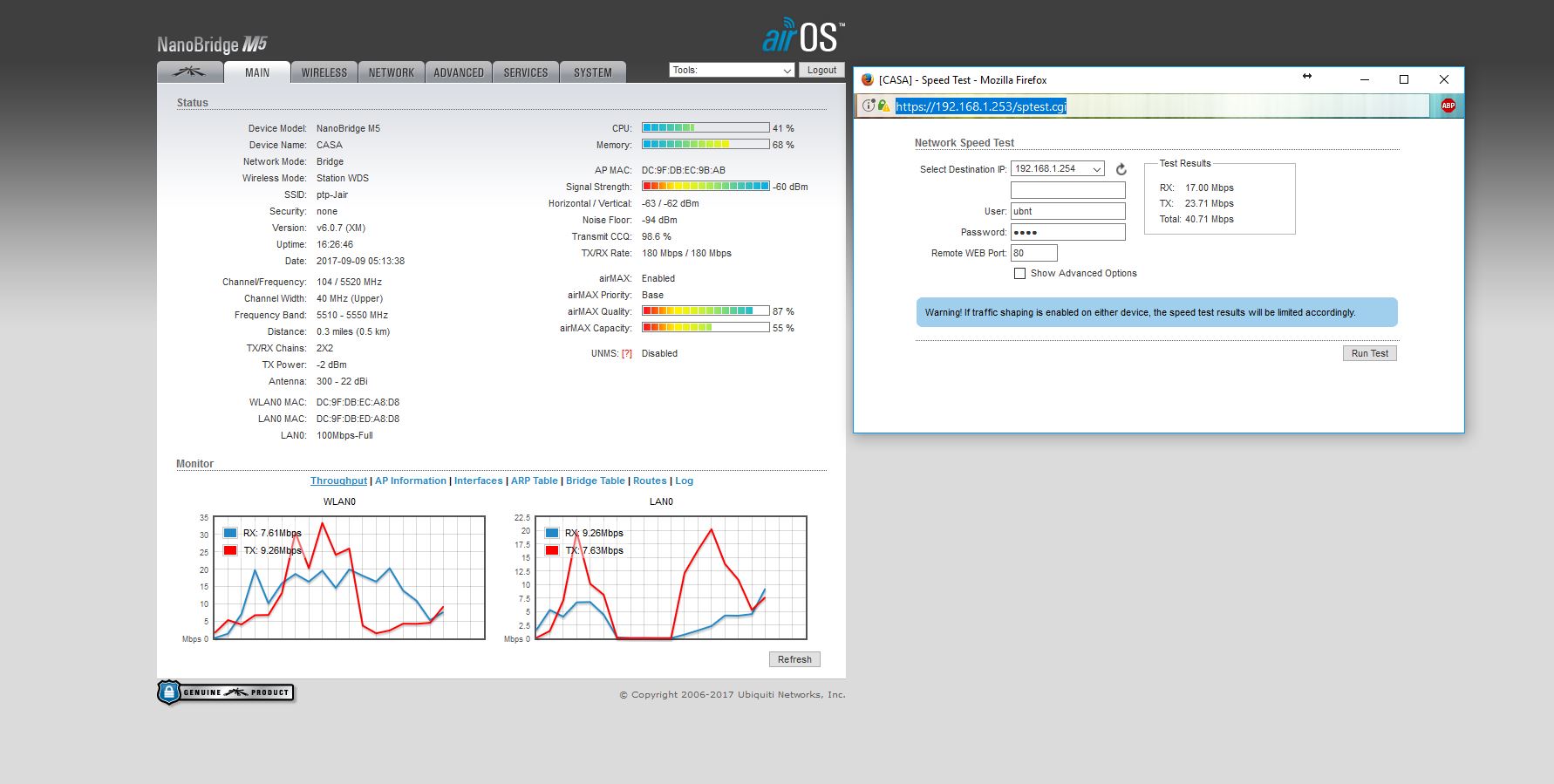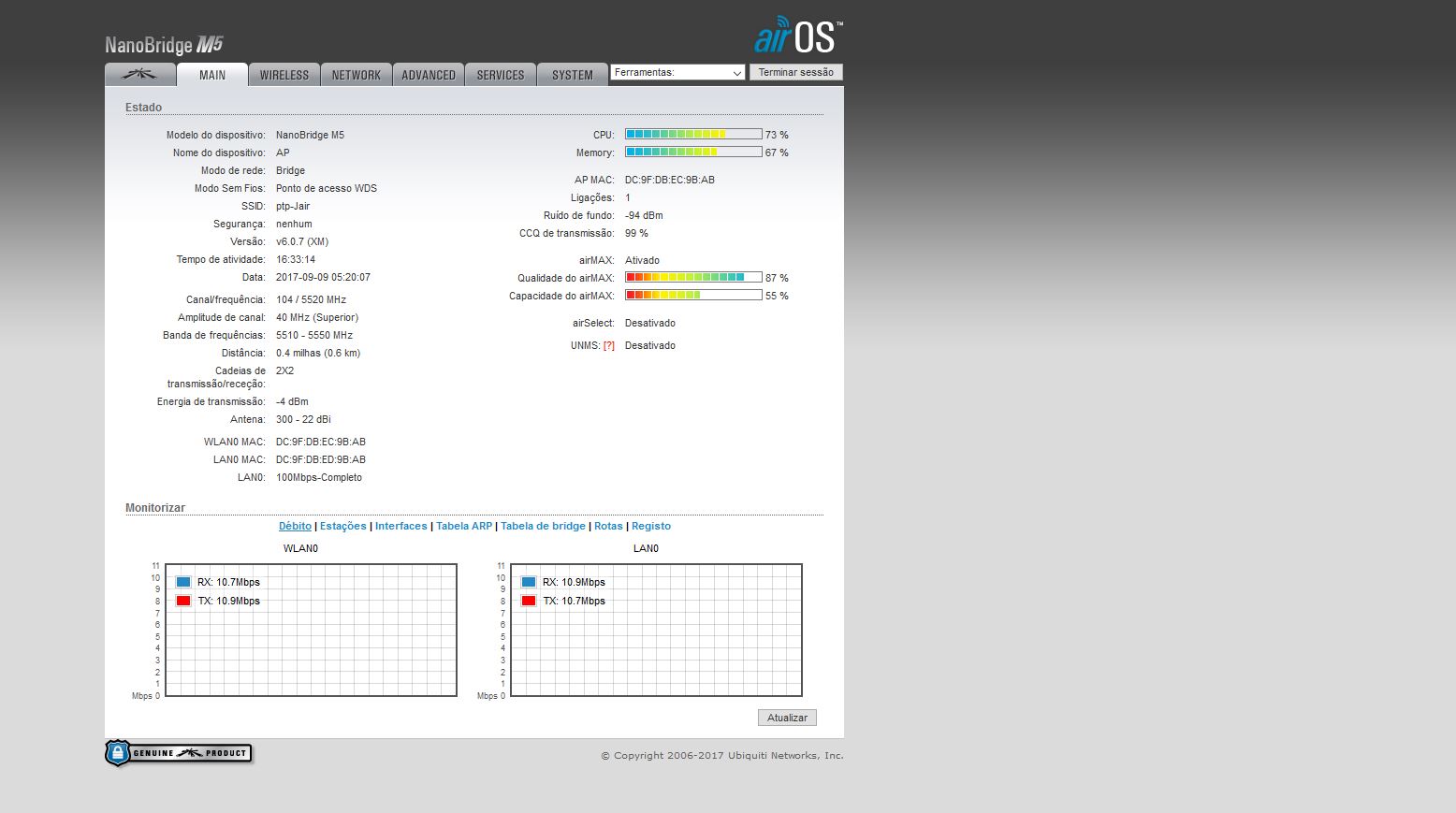 Fiz um PTP de 2 NANO Brigde m5, por 5 meses usei elas normalmente, estava perfeito, ate tinha esquecido de verificar como elas estavão, ate que um dia simplesmente começou a ficar lento, verifiquei e notei que o sinal tinha caido, CQC estava em 80%.