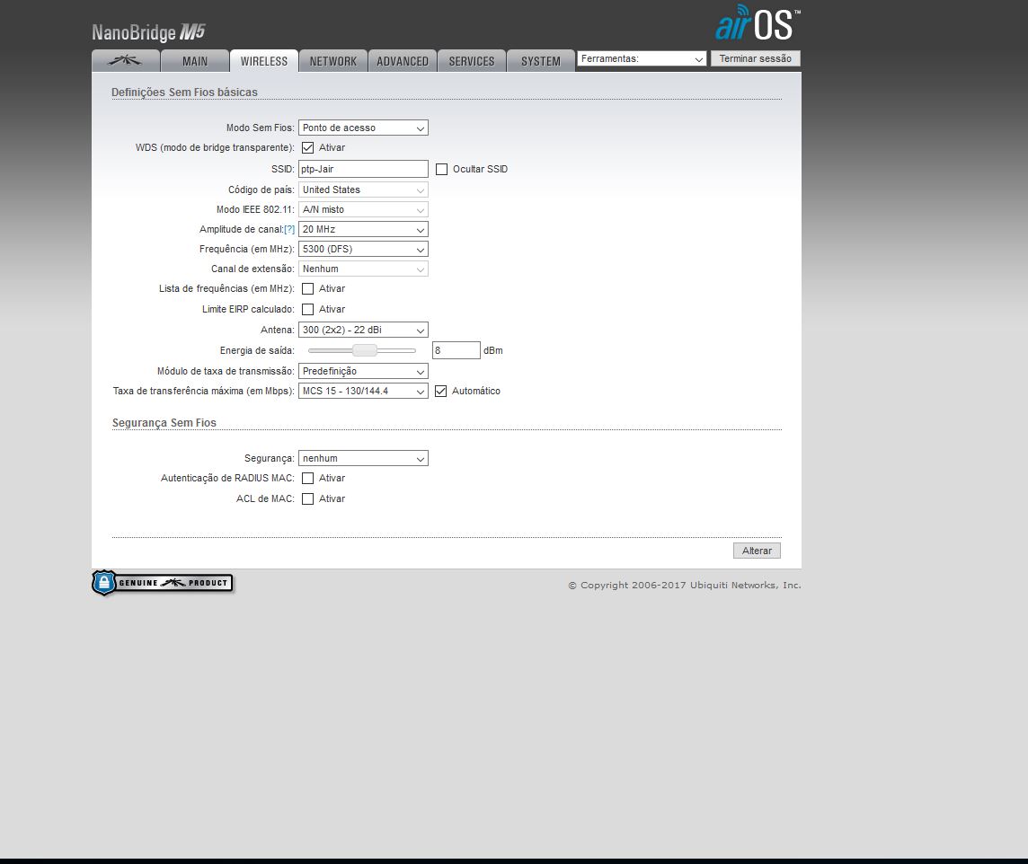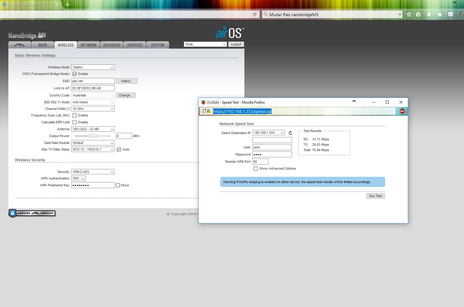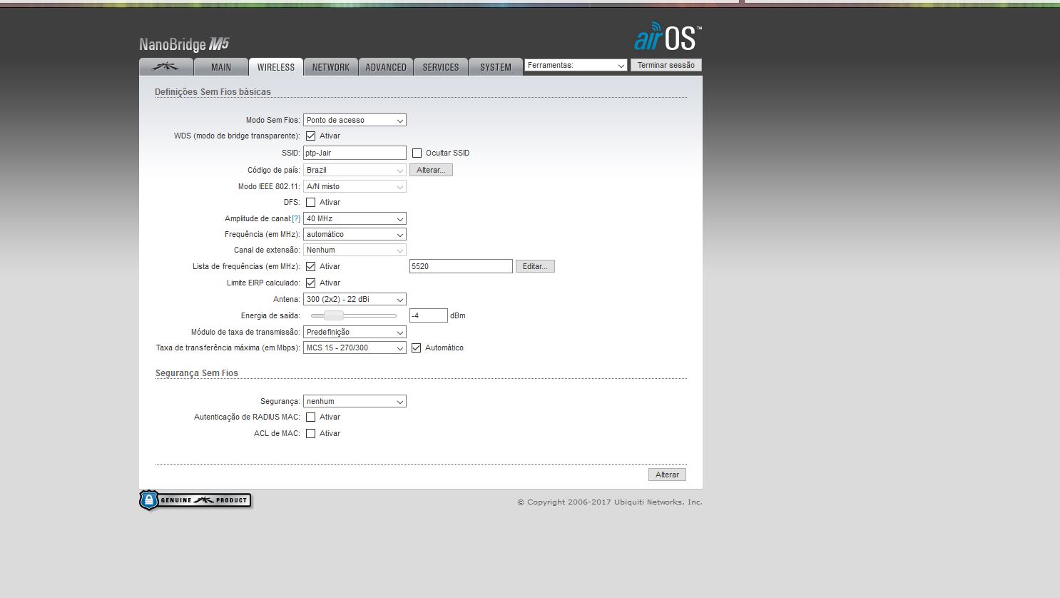Ja tentei trocar os canais, alterar a frequência de 40/30/20/10 Mhz, desativar airmax, tirar senha (por sinal esta sem agora), troquei as fontes de energia.