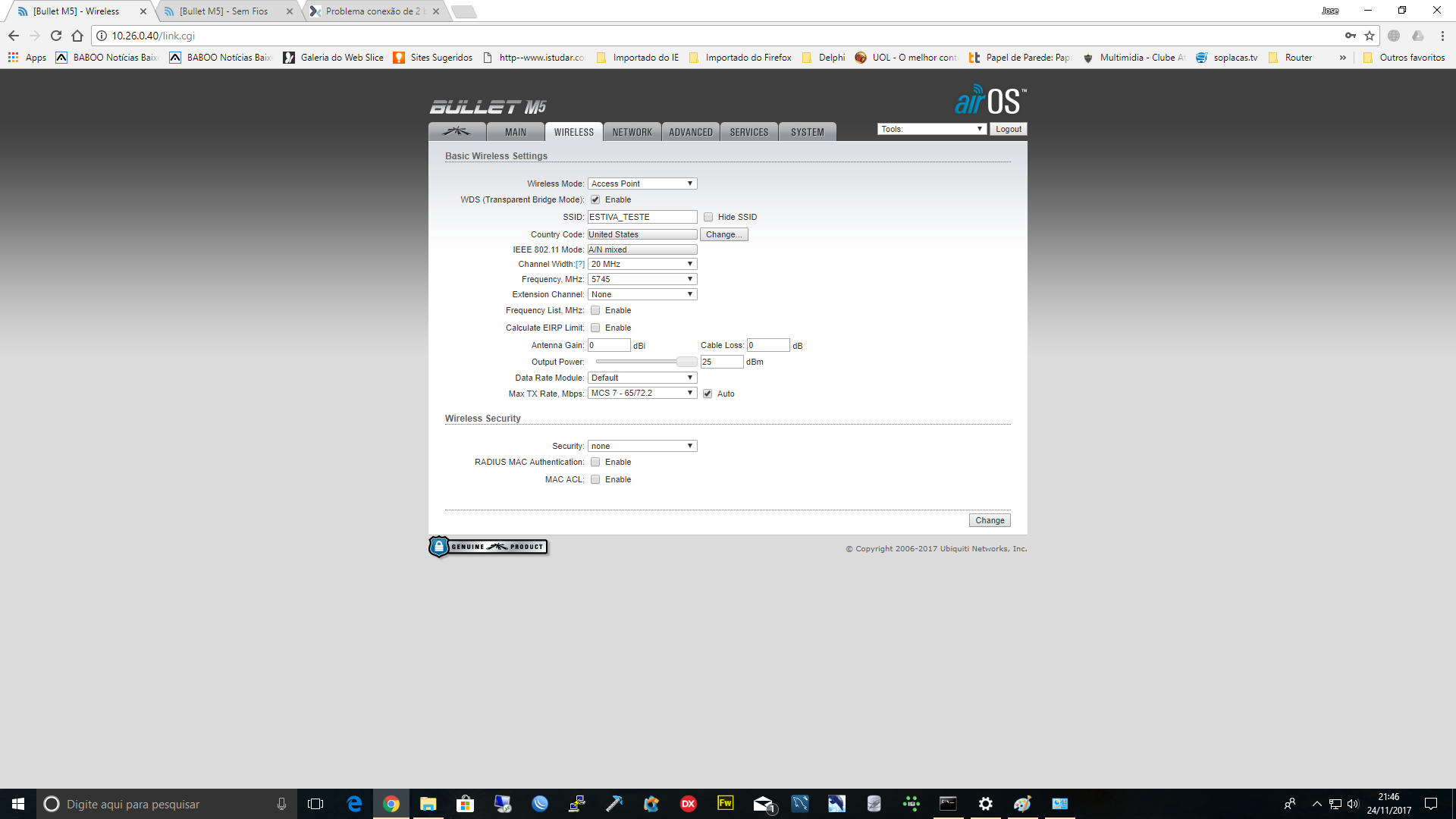 ja atualizai o firmware dos 2 bullets e não resolveu.