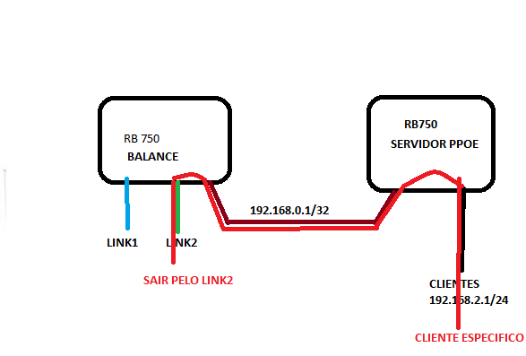 preciso fazer uma rota (configuração) onde o cliente autentica no CONCENTRADOR via ppoe e vai pra outra RB-BALANCE e sai pelo link 2.