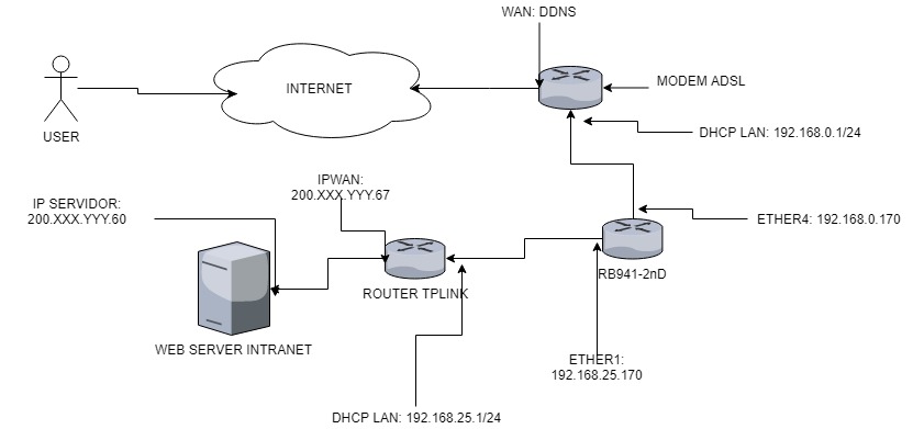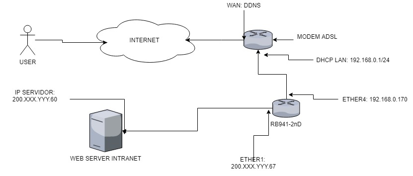 O redirecionamento do modem adsl para RB está funcionando, só estou travando para direcionar a requisição para o server.