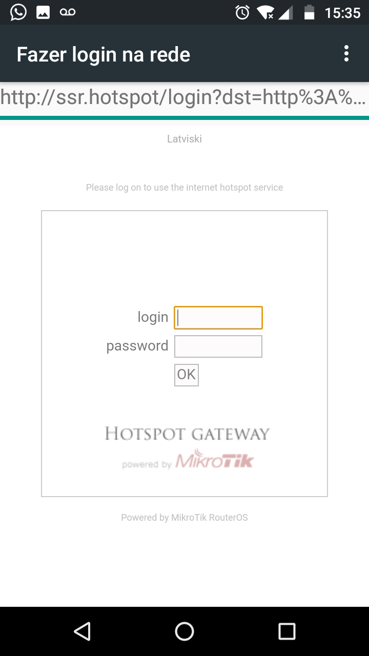 A verdade é que quando conecto a rede Hotspot pelo celular, aparece a mensagem "Fazer login na rede Wi-Fi". Clico na mensagem, abre a tela de login, coloco usuário e senha. Aí ele aparece redirecionando pra minha página e fecha a página antes de redirecionar.