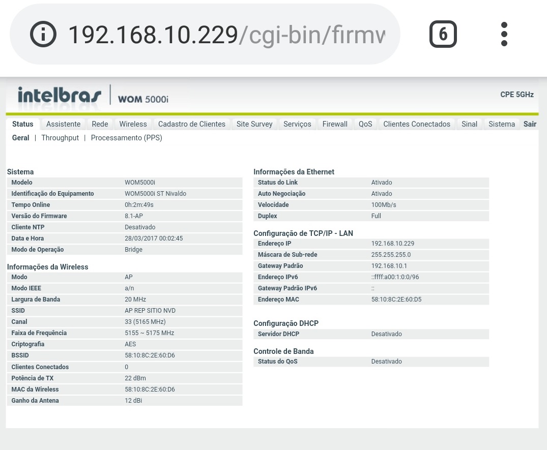Deixo em anexo os prints na ordem: tela de status, tela de configuração.