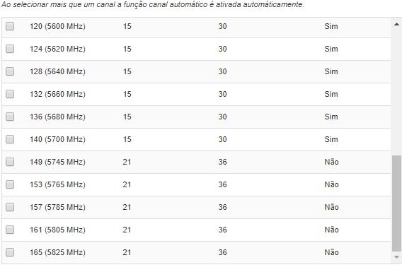 Estranho porque é em uma área rural e não tem torre alguma nas proximidades. Porém vou testar em outros canais. O ideal seria vocês fazerem igual a Ubiquiti, na frente do canal que for da faixa, colocar entre parenteses a sigla DFS.