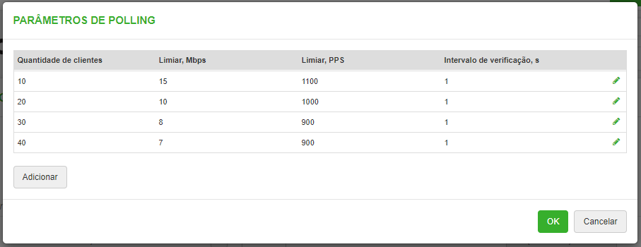 Nota: para o modo PTP será usada apenas a primeira regra, que mostra que o polling começará quando a estação atingir um throughput agregado de 15Mbps ou 2000PPS.