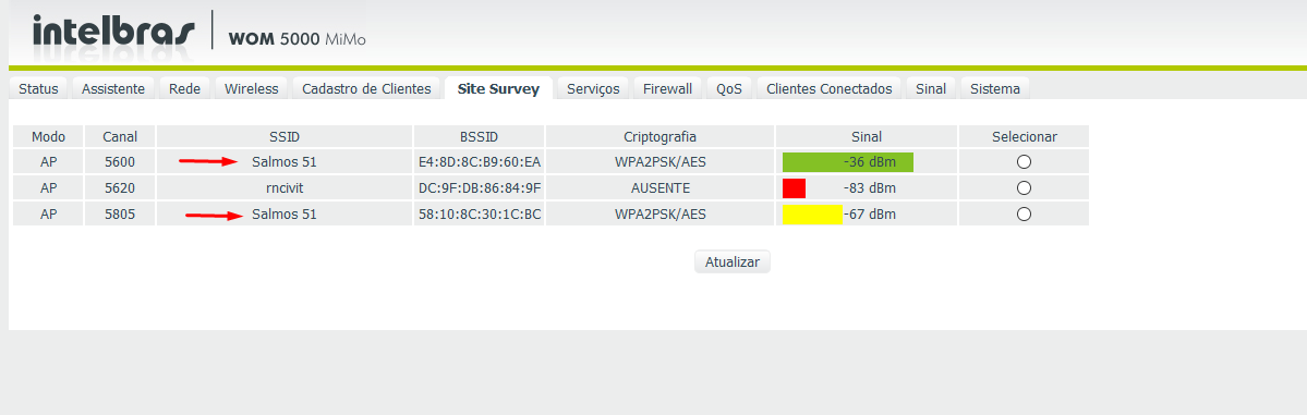 Seguem a foto que tirei diretamente do painel de uma das Cpes de um cliente.