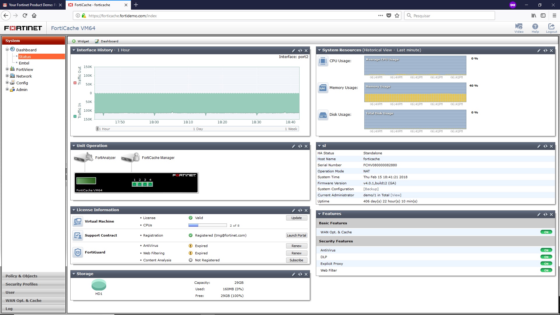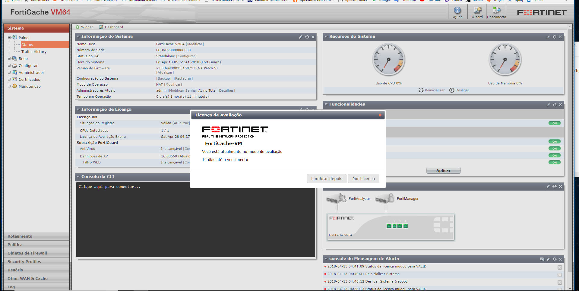 é impossível! usa a versão de avaliação se coloca um hd virtual ou mais core, memoria fica inativo a licença de 15 dias. Então não serve de nada! pode compra a versão final aqui: http://www.avfirewalls.com/FortiCache-Series.asp