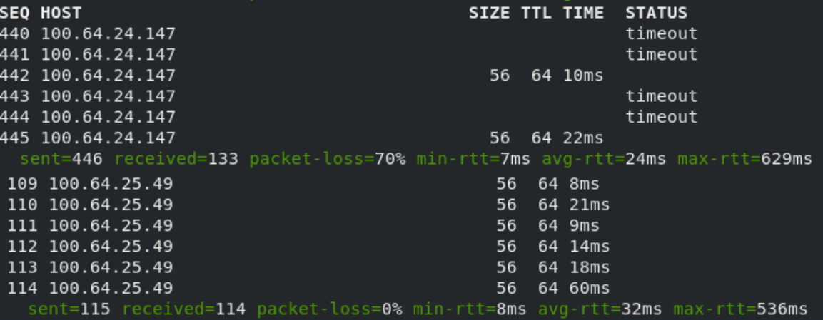 Nessa imagem o cliente de cima com perca de 70% o de baixo 0%, os dois no mesmo painel nivel de sinal parecido, tudo igual... incrivel qdo eu concentrava o pppoe direto no painel o cliente de cima respondia normalmente, concentrei a partir de vlan em um só concentrador central, começou a perder e estou com diversos casos assim, troca o equipamento no cliente funciona normalmente.