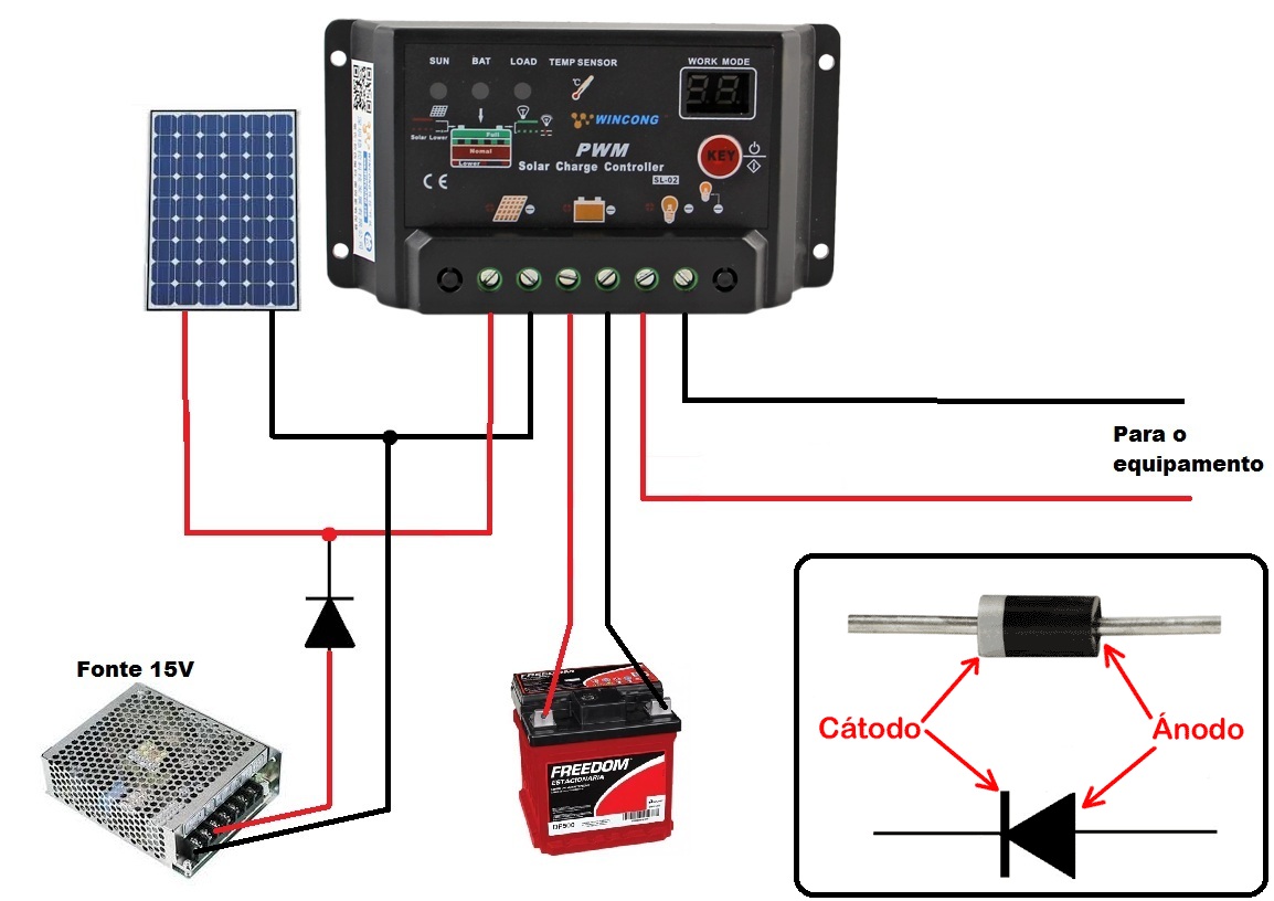 Acrescentar um carregador auxiliar para uma fonte no-break utilizando um painel solar