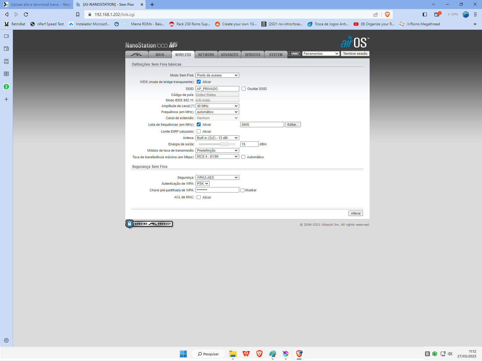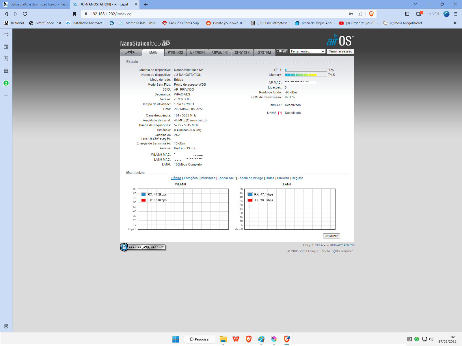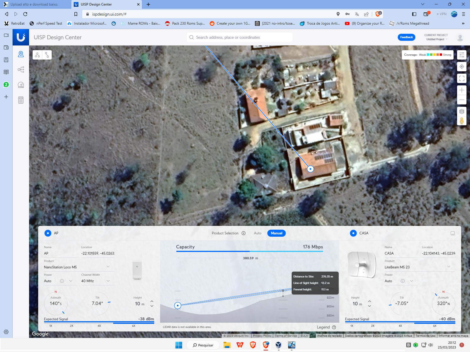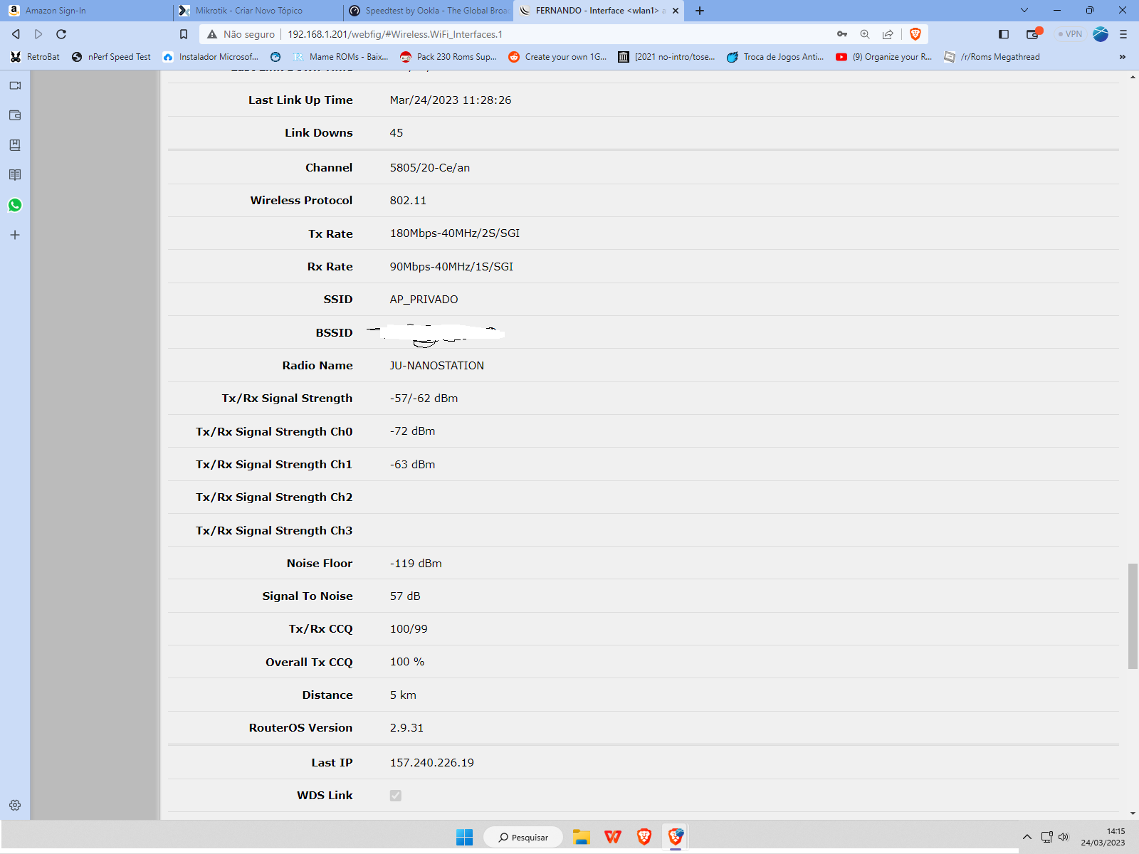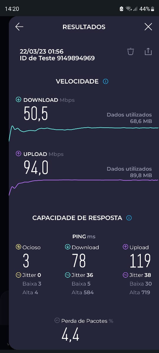 Ocorre que o enlace após testes mostra um download de 50 mb/s na média e o up chega a 90 mb/s. (na teoria suportaria até 100 mb/s) devido aos equipamentos que estou utilizando.