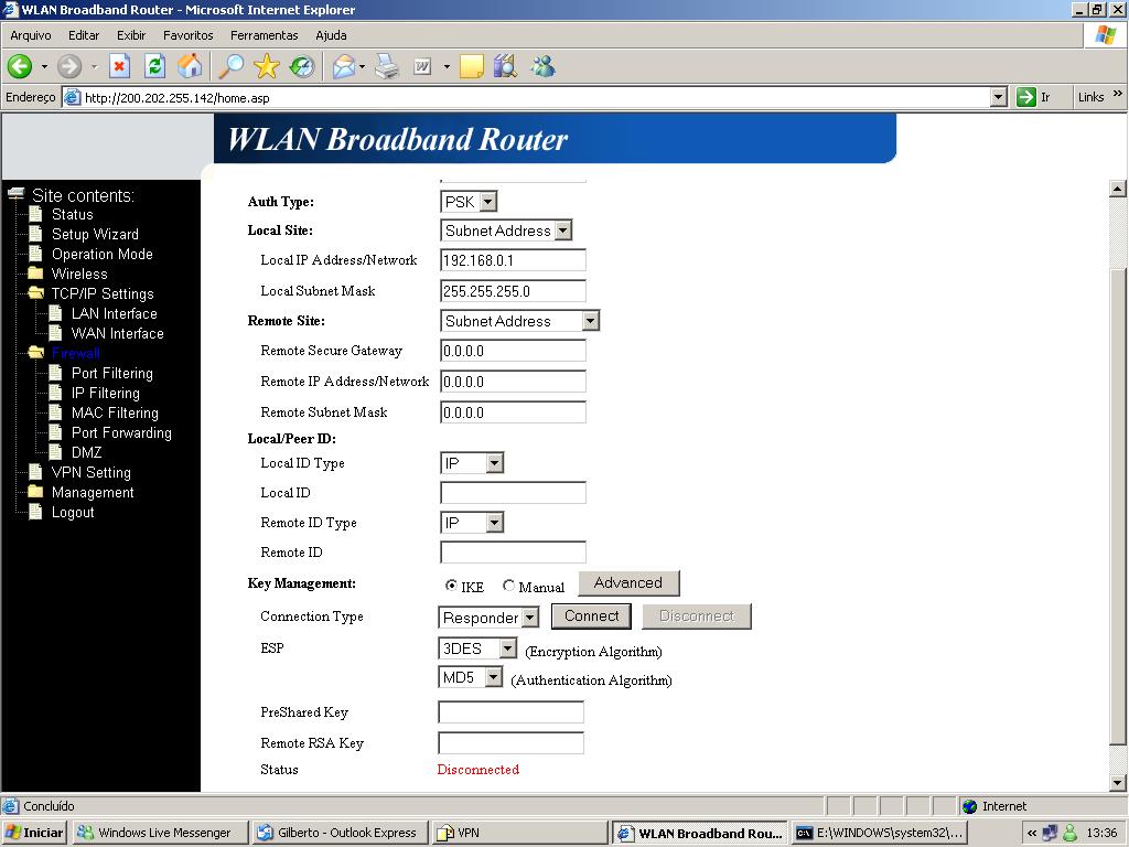 Estou com muitas duvidas em fazer essas configurações pois uso um wireless router com o ipsec. Tirei o print scrin da tela de configuração do meu router, alguem sabe como começar a configurar isso??