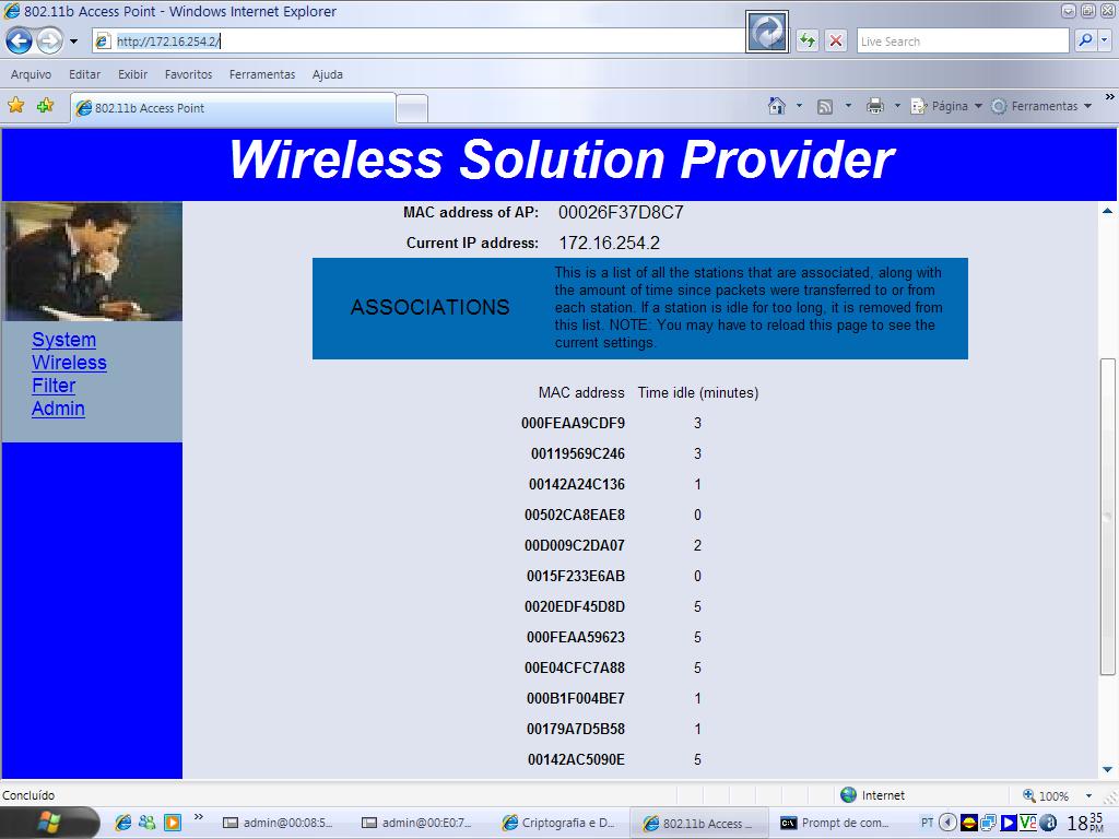 o screen que tirei do senao, mostra a conexão feita pelo mac da g520 00:17:9A:7D:5B:58 e no screen do mk, acho que esse conected to ess (seria a conexão com o ap).