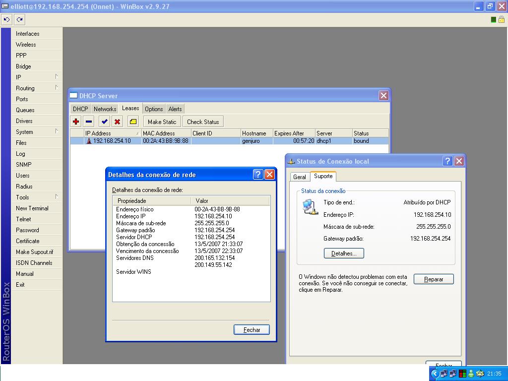 ola pessoal.... eu consegui entrar no winbox com um tutorial que o Sergio Souza me mandou.. (desde ja agradeço a sergio).... Massa!!!! e meu server Mk ja esta respondendo na rede publica. com ip fixo.. Até ai blz... Mas agora la vem outras duvidas...