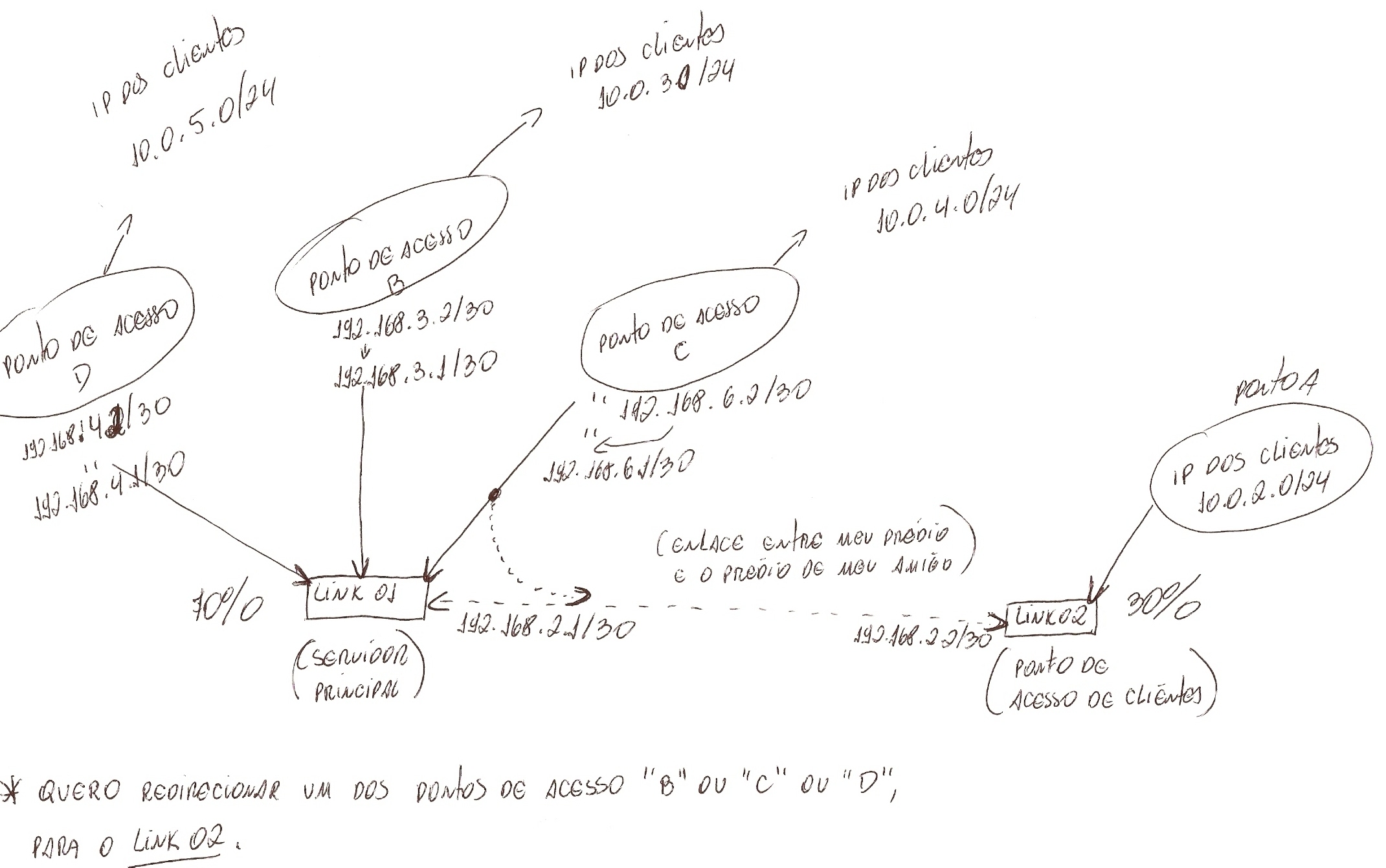 Hoje, 70% dos meus clientes estão acessando a internet no primeiro link que fica no meu prédio e os outros 30% estão no link q fica no prédio do meu amigo.
