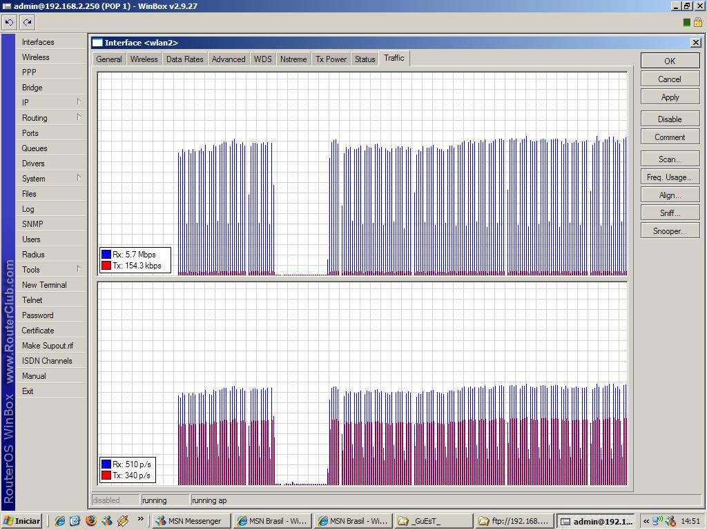 Nesse momento tem 56 clientes simultaneos em um ap meu e ta passando 600 kbps nele a media e 150 kbps por cliente aqui.