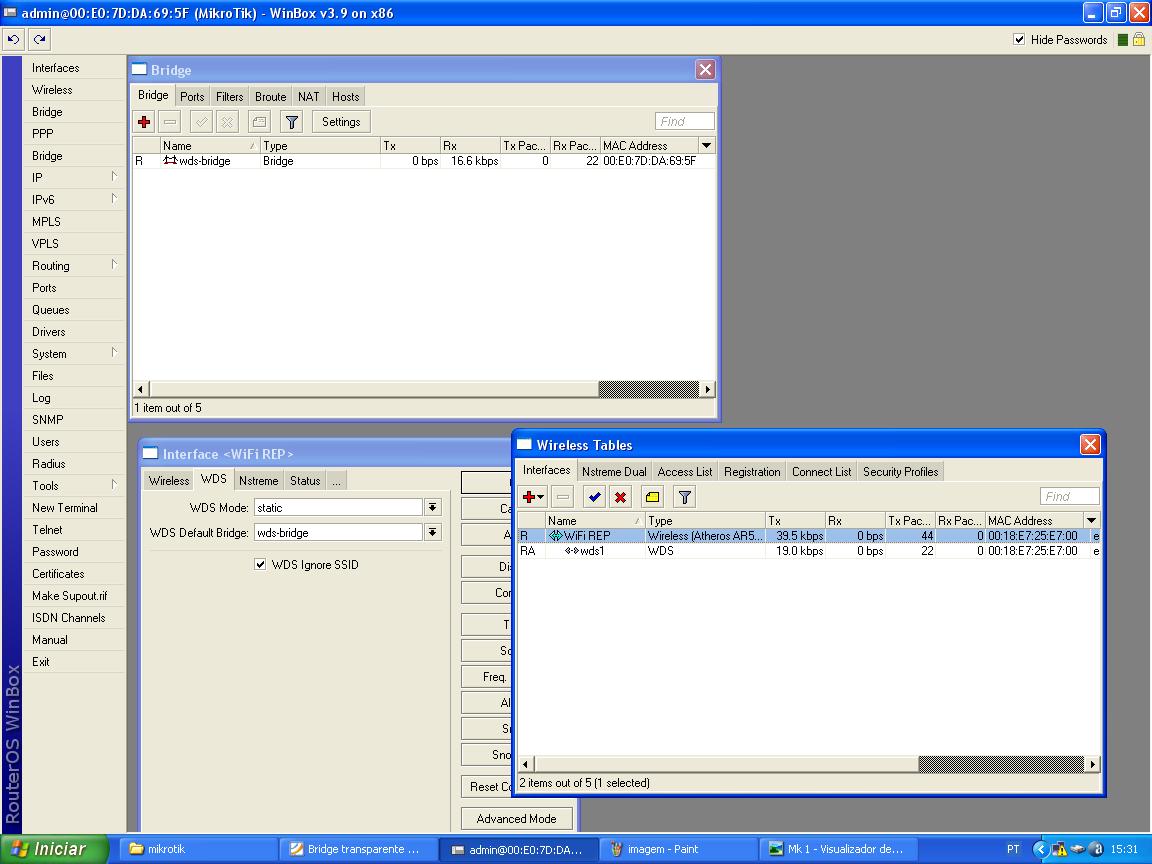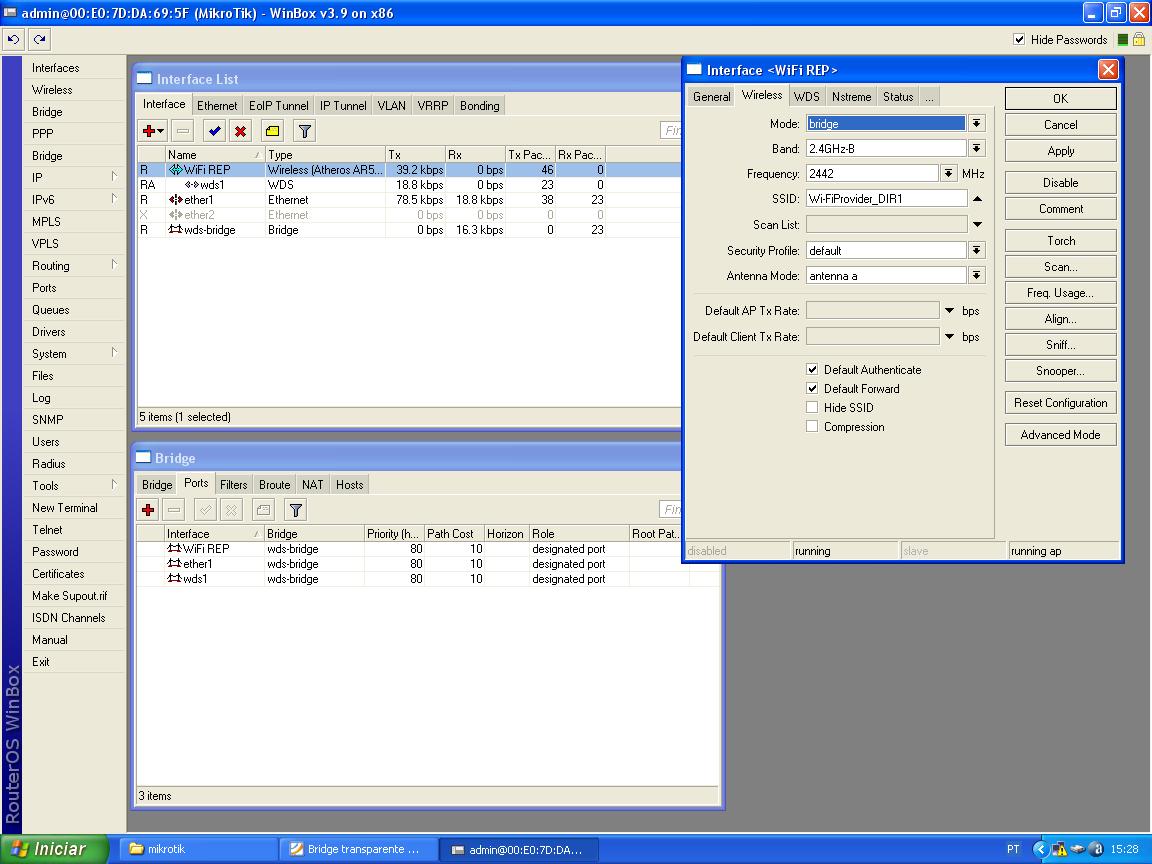 Observe também que dentro da bridge está a wlan4 e o wds4.