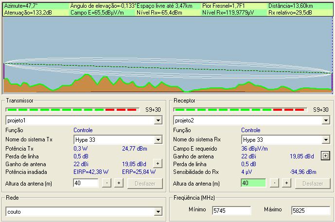 veja bem fiz o projeto seu pelo programa radio mobile e tive o seguinte resultado.