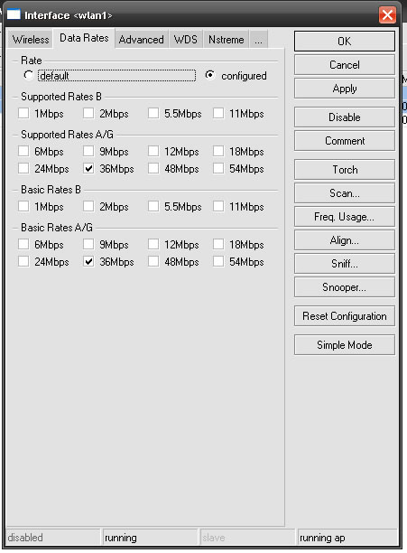 Amigo, deixe o data rate em 36mb! (é o essencial pra rede pra trafegar uma boa taxa e super estavel)