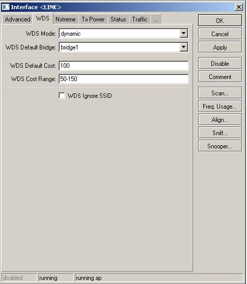 dfs-mode=none antenna-mode=ant-a wds-mode=dynamic wds-default-bridge=bridge1 wds-default-cost=100 \