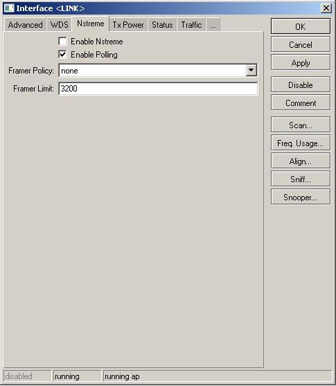 set LINK enable-nstreme=no enable-polling=yes framer-policy=none framer-limit=3200