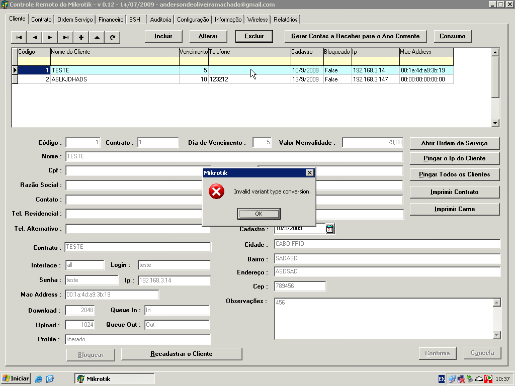 Surgiro algumas novas opções para o desenvolvimento do Sistema Administrativo para Mikrotik