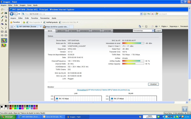 obrigado alexandre ontem a noite mesmo consegui fechar esse enlace usando rocket m5 com antena original dela mesmo 30dbi o grande problema e que a noite o sinal fica otimo -60 mas durando o dia vai pra 84 obrigado.