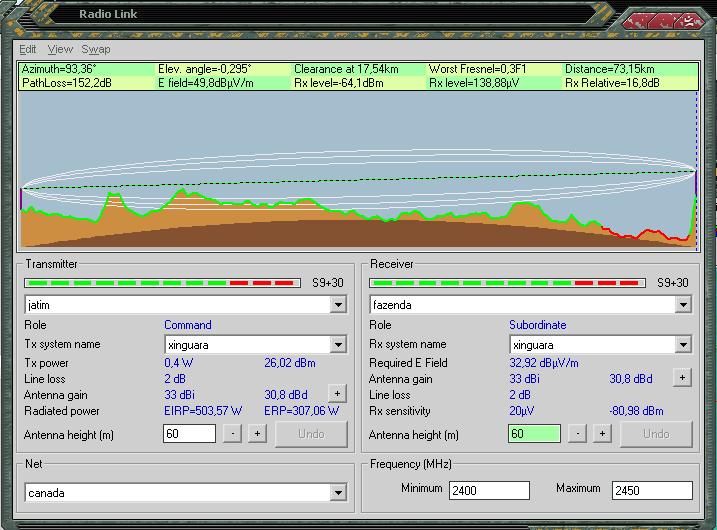 ponto B 5° 9'14.59"S torre de 45m antena em 30m