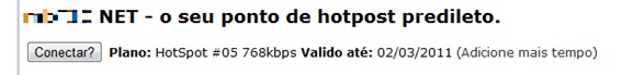 Após efetuar o login e dependendo do perfil do usuário e se ele estiver conectado na rede ira aparecer um botão “Conectar?” informando plano e validade do serviço: