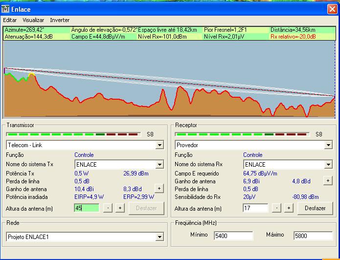 tem algo errado na img do radio mobile olha o ganho da antena esta com 6 dbi e não 30 arruma la pois por esta img o ganho fica baixo mesmo com antena de 6 dbi