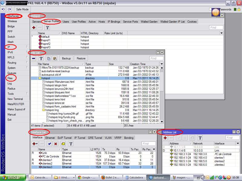 Já ja tenho Winbox e Uso um Pc-Mikrotik poriso acho q não tem como deixar kd setorial com um hostpot até pq minha Cpu so tem 3 Pci e são quatro Antenas e tb tem os clientes que são cabo então como ficaria minha estrutura