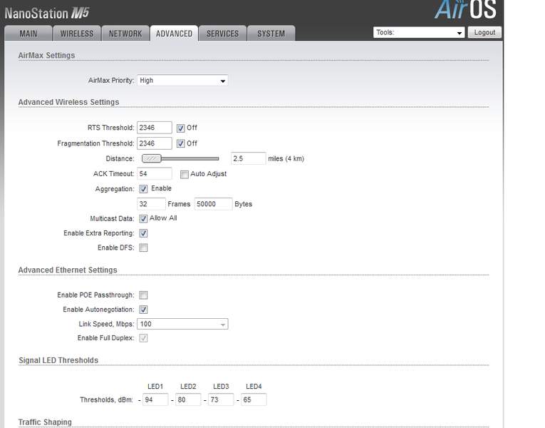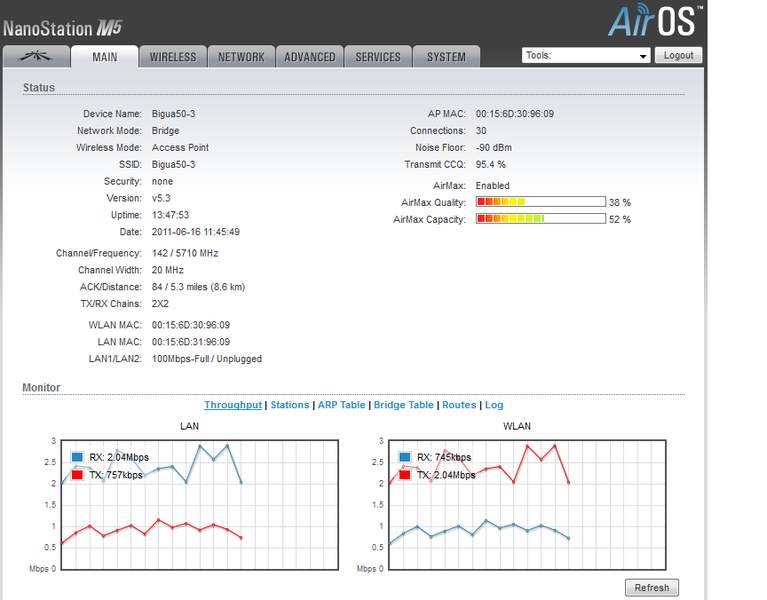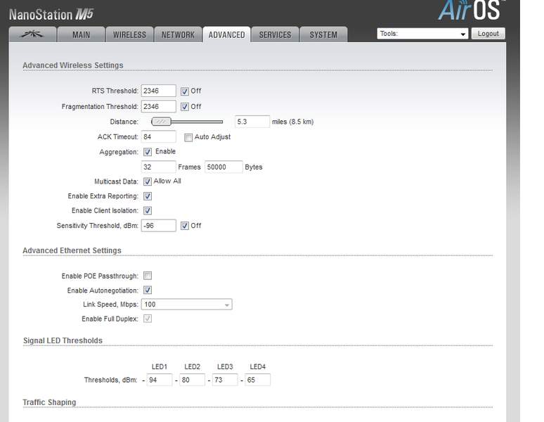 Meu Ambiente é um Ponto multi ponto, um Nano M5 como AP e Nanos M5 clientes, tenho aproximadamente 25 clientes na torre com no máximo 5 km de distancia.