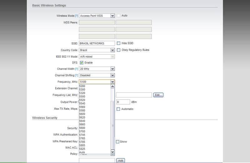 Mas consta a FAIXA sim, com certeza. De qualquer forma, segue a mesma ideia no 5.8. O último canal disponível seguindo a Resolução 506 seria 5850, e nos aparelhos que eu utilizei até o presente momento no código de país Brazil só consigo até 5825. E não é só nos UBNT, nos cartões R52H da Mikrotik também não consigo utilizar esses canais altos.
