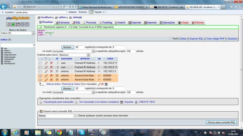 Pessoal, estou com a seguinte dúvida - Estou com um servidor completamente configurado e preparado para rodar como servidor de autenticação PPPoE, com os pacotes Freeradius, Mysql, PhpMyAdmin - todos versões mais atuais possíveis.
