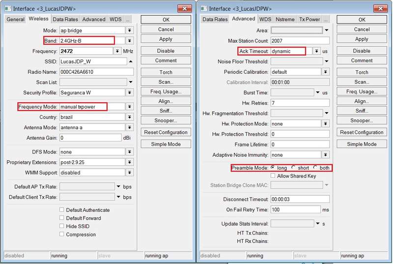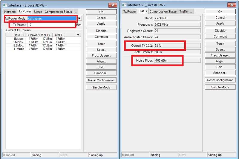 Tenho algumas dúvidas com o ACK da minha rede, são elas: Tem cliente que conecta de manha e o ACK dele está a 30, e quando esse clente conecta a noite o ACK está a 208, outro dia tinha um cliente prejudicando toda a minha rede com o ACK a 407, tive que desconecta-lo no acess list pra rede melhorar, no outro dia mandei um fucionário meu trocar o kit desse cliente, e nem chegou a trocar o kit, ligou de novo e o ACK estava a 30, e até hoje está a 30, 95% dos meus clientes está a 30, mas alguns eu não sei o que acontece, hora está a 30, hora está a 195, 207, ou outro valor alto, já realinhamos antenas, trocamos placa PCI e continua a mesma coisa, se alguem aqui no fórum já tiver passado por isso e souber como resolver, por favor me diga, até coloquei um script para desconectar o ACK quando for maior que 60, está ajudando muito, mas alguns clientes continua variando, não sei o que fazer. Obrigado a todos!